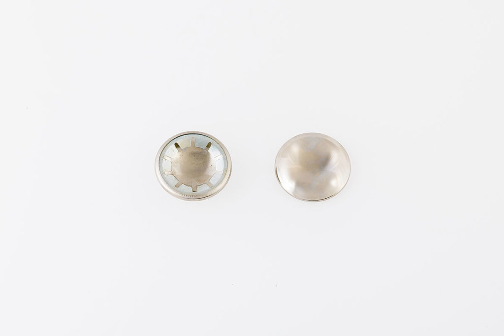 Le rondelle di fermo chiuse sono dotate di un cappuccio per nascondere il fissaggio e migliorarne l’aspetto esteriore. Meno economiche della serie aperta, vengono usate per montaggi estetici con ruote che non dispongono di tappo o borchia di copertura.